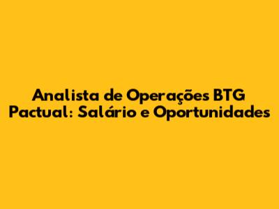 O que Faz um Analista de Operações no BTG Pactual?