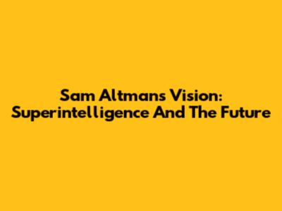 Sam Altman's Vision: Superintelligence And The Future