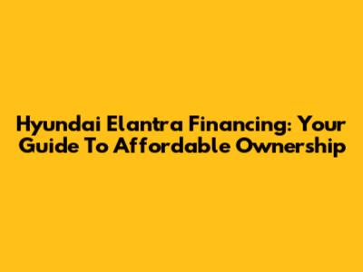 Hyundai Elantra Financing: Your Guide To Affordable Ownership
