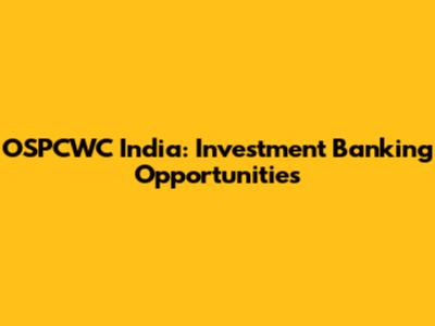 OSPCWC India: Investment Banking Opportunities