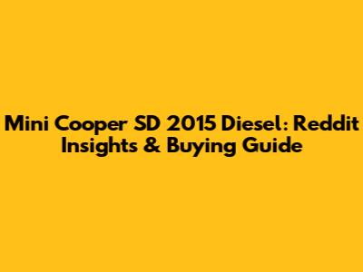 Mini Cooper SD 2015 Diesel: Reddit Insights & Buying Guide