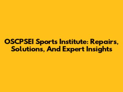 OSCPSEI Sports Institute: Repairs, Solutions, And Expert Insights