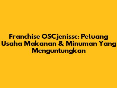 Franchise OSCjenissc: Peluang Usaha Makanan & Minuman Yang Menguntungkan
