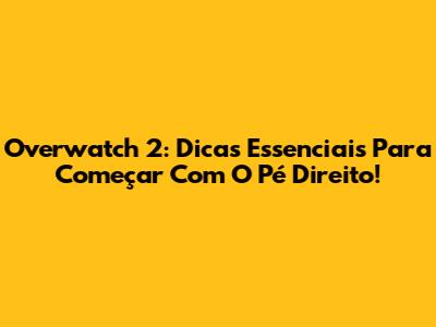 Overwatch 2: Dicas Essenciais Para Começar Com O Pé Direito!