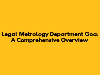 Legal Metrology Department Goa: A Comprehensive Overview