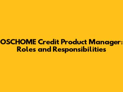 OSCHOME Credit Product Manager: Roles And Responsibilities