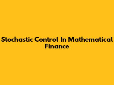 Stochastic Control In Mathematical Finance