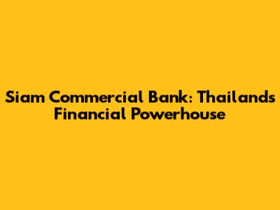 Siam Commercial Bank: Thailand's Financial Powerhouse