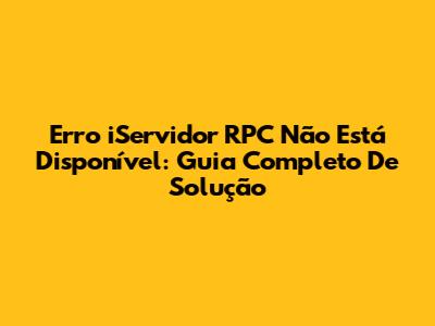 Erro 'iServidor RPC Não Está Disponível': Guia Completo De Solução