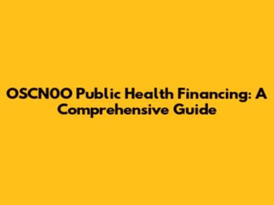 OSCN0O Public Health Financing: A Comprehensive Guide