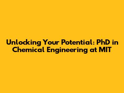 Unlocking Your Potential: PhD In Chemical Engineering At MIT