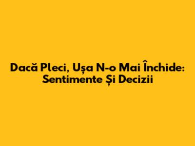 Dacă Pleci, Ușa N-o Mai Închide: Sentimente Și Decizii
